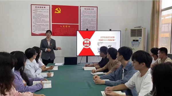 “双师同堂”教学,就是两位教师同上一节课,用以解决不同的知识点难题。“三环七步”教学法就是通过讲、辩、评三个环节,引导学生通过合作讨论、独立思考等方式解决问题。展示课选择以《思想道德与法治》专题七“大学生如何实现青春梦想”为主题进行授课。