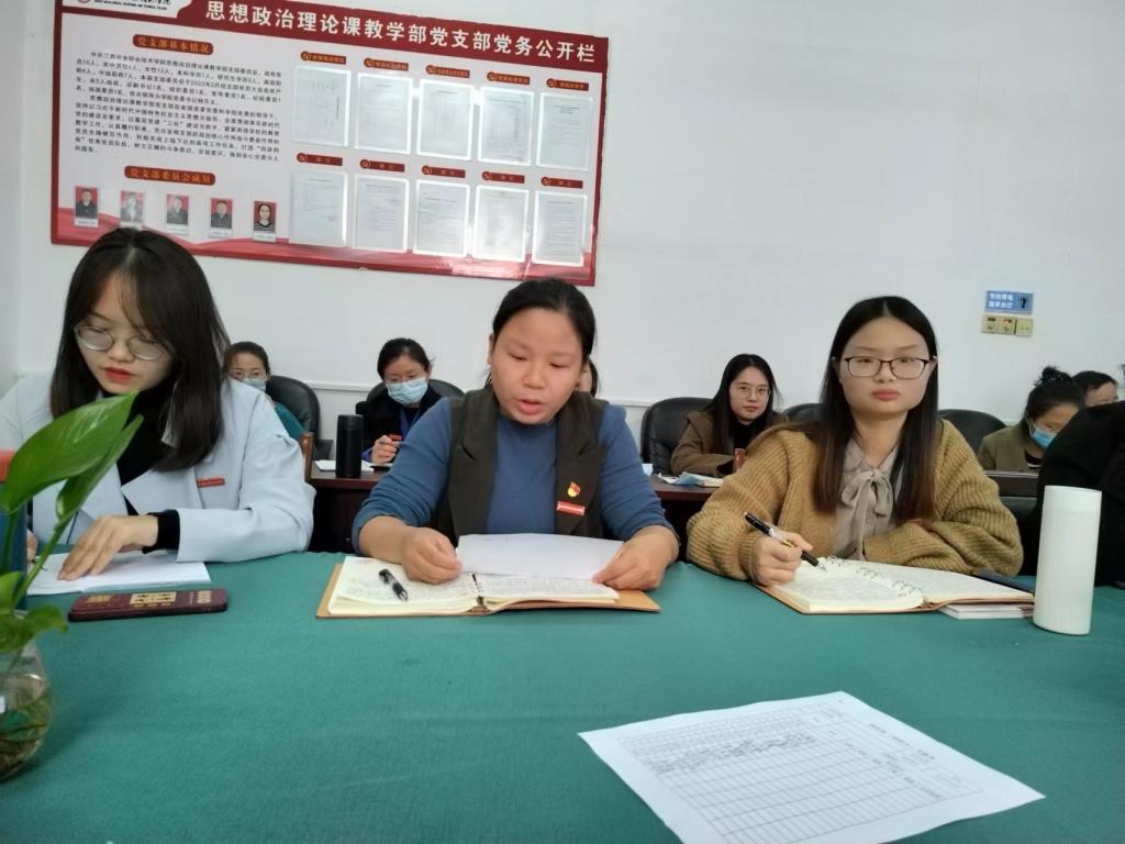 2022年11月15日下午,思政部党支部在图书馆四楼党员活动室开展了“践行社会主义核心价值观 向身边师德师风模范学习”主题教育活动。活动由部门负责人、党支部副书记周维主持。