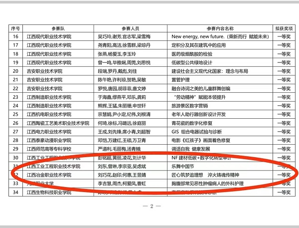 近日,2023年江西省职业院校技能大赛教学能力比赛获奖名单(高职组)揭晓,思想政治理论课教学部刘巧花团队参赛作品《匠心筑梦追理想 淬火铸魂传精神》斩获一等奖。获奖团队成员为刘巧花、何惠、赵印、王昱婧。
