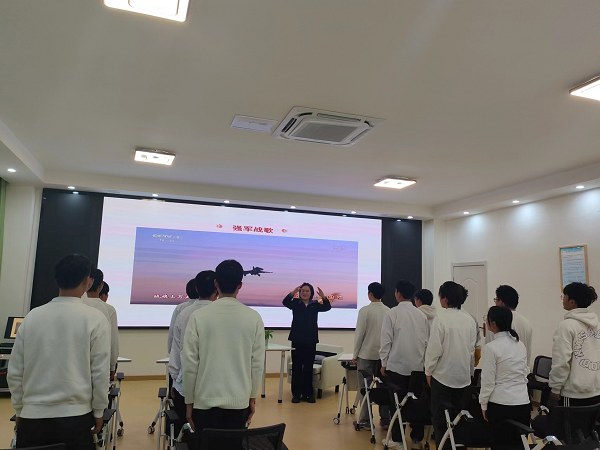 最后,在刘洋老师的带领下,同学们齐唱《强军战歌》,在嘹亮的歌声中感受人民军队的战斗作风和强大的力量。