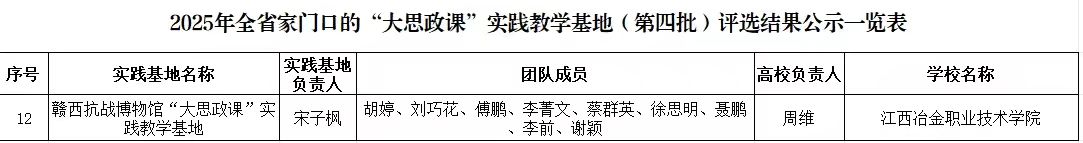 同时申报的赣西抗战博物馆实践教学基地被评为全省家门口的“大思政课”实践教学基地(第四批)。