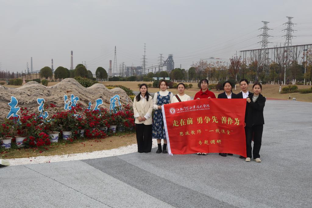 其次是寻新,即寻找我们身边生动的体现创新精神的鲜活例子。调研第二站来到宝武新钢集团。恰逢2025年新余市“天工开物杯”机械冶金劳动和技能竞赛余热未散,赛场内仿佛仍回响着竞技的激情与创新的号角。在新钢厂史馆发展史展陈区,师生们了解了企业的历史。新钢在高端钢材、绿色智能制造等领域的突破,成为传统产业通过科技创新焕发新活力的生动写照,为理解“新质生产力”提供了鲜活案例。