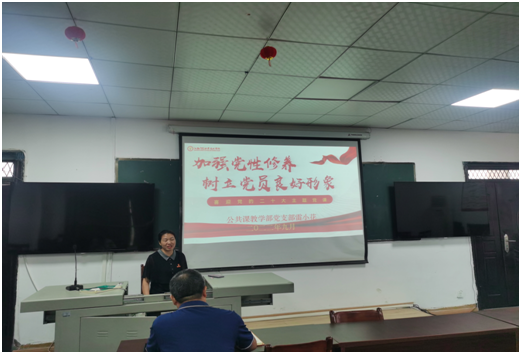 【公共课教学部党支部谢娟报道】为加强党员党性修养,喜迎二十大胜利召开,9月20日下午,公共课教学部党支部在明辩楼312党员活动室开展党课学习活动。本次党课由党支部书记戴宝富主持,挂点支部领导、党委委员、副院长彭全参加了本次党课学习。