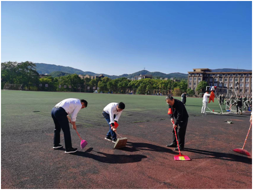 活动中,党员们饱含热情、协同合作,积极投入。经过两个多小时的分工协作,田径跑道焕然一新。