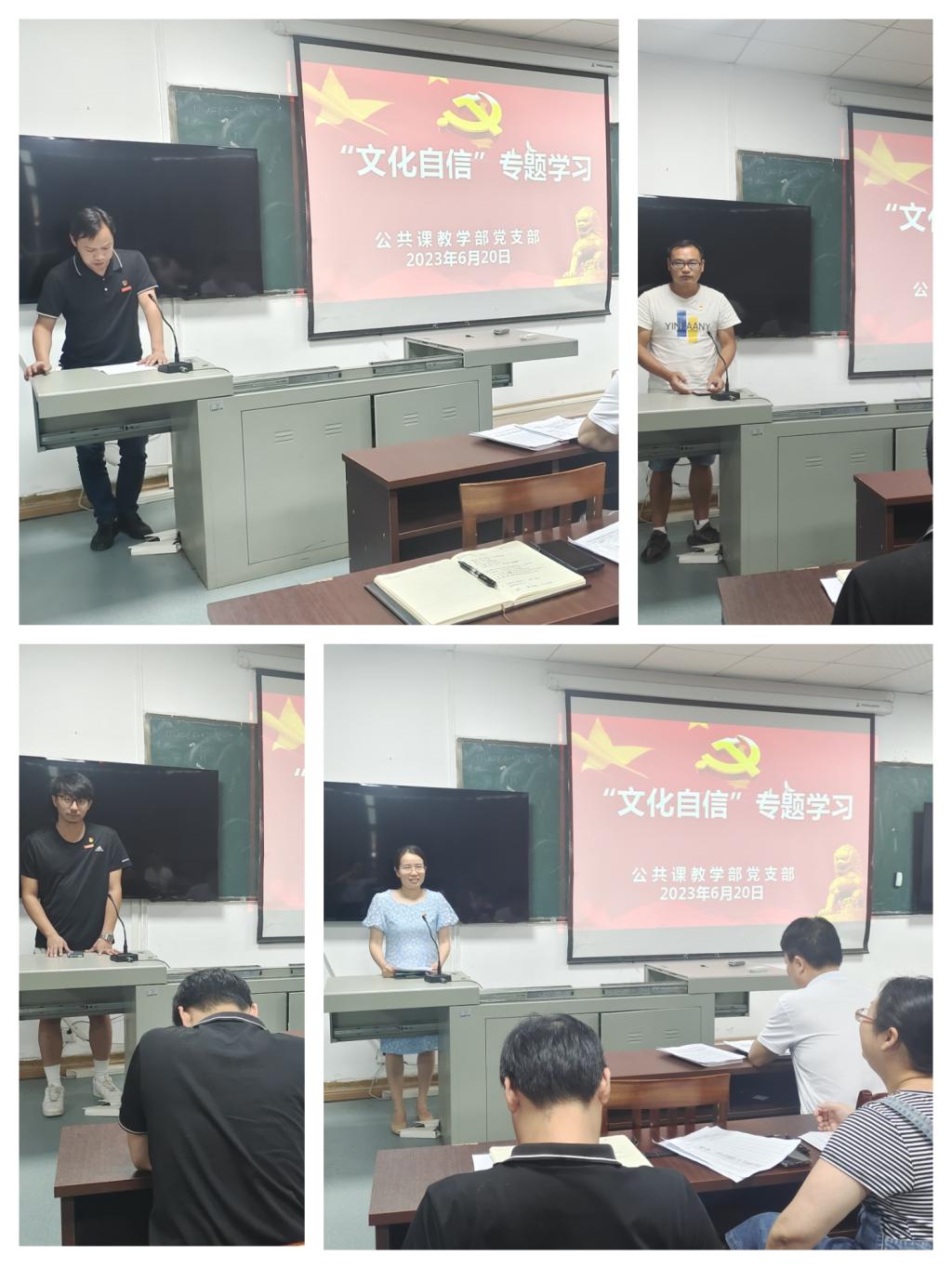 会议伊始,戴宝富部长、雷小光老师先后领学了《习近平总书记在二十届中共中央政治局第五次集体学习时发表的重要讲话精神》、《学习习近平总书记在文化传承发展座谈会上发表的重要讲话精神》。为了开好本次联席会,党支部结合学习材料提前一天围绕“坚定文化自信﹑建设文化强国”进行了专题研讨,温世岐,罗仕香,黄辉及袁小阳等党员进行了研讨发言。