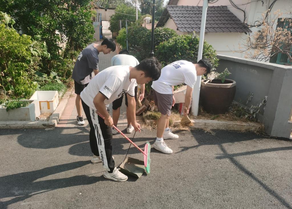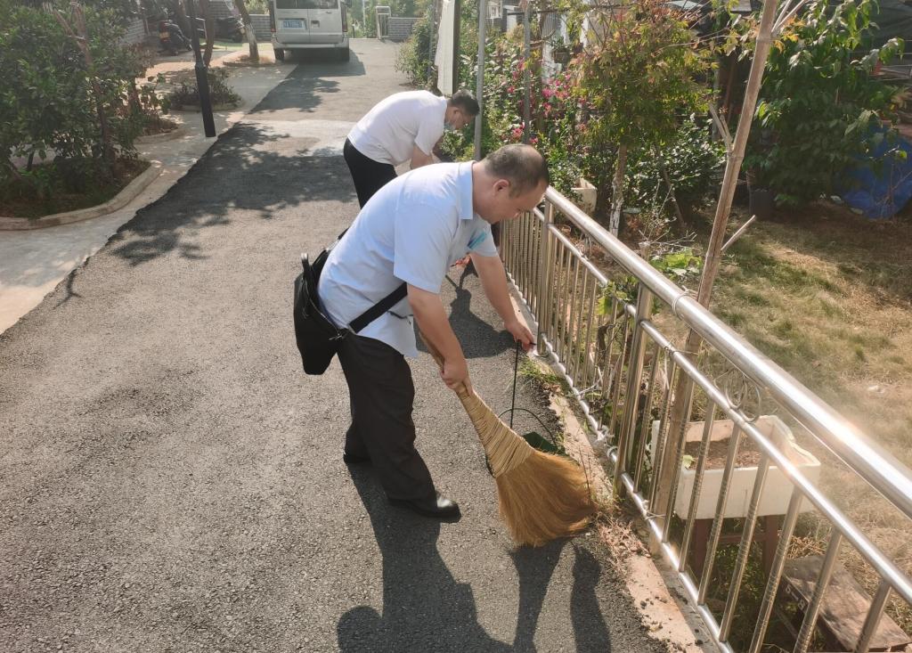 下午3点,在继续教育中心副主任郭永飞的带领下,中心人员与电子协会学生集体行动,拿起扫帚、铲子、钳子等劳动工具,对家属楼绿化带、主干道、墙角及机械设备点检员基地等场所,特别是对卫生死角、绿化带杂草等进行了认真清理打扫。