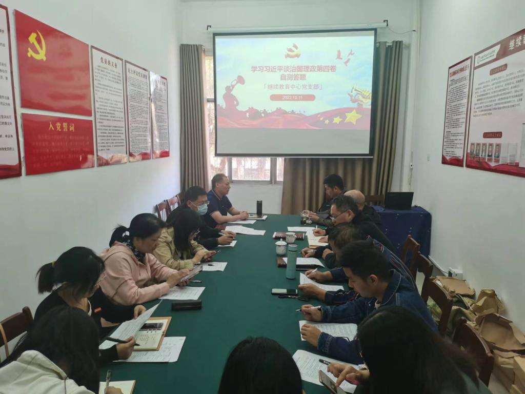 活动结束后,党支部开展政治学习,学习了《习近平谈治国理政》第四卷。为了丰富学习形式,中心党支部举办了专项答题活动。答题现场,大家沉着冷静、认真思考、分秒必争,以良好的精神状态投入答题活动中。