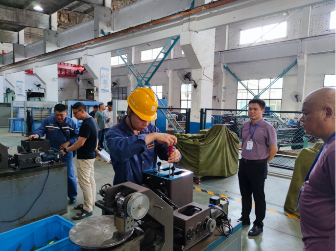 继续教育中心副主任郭永飞、新钢培训中心科长邓勇到实作场地指导。