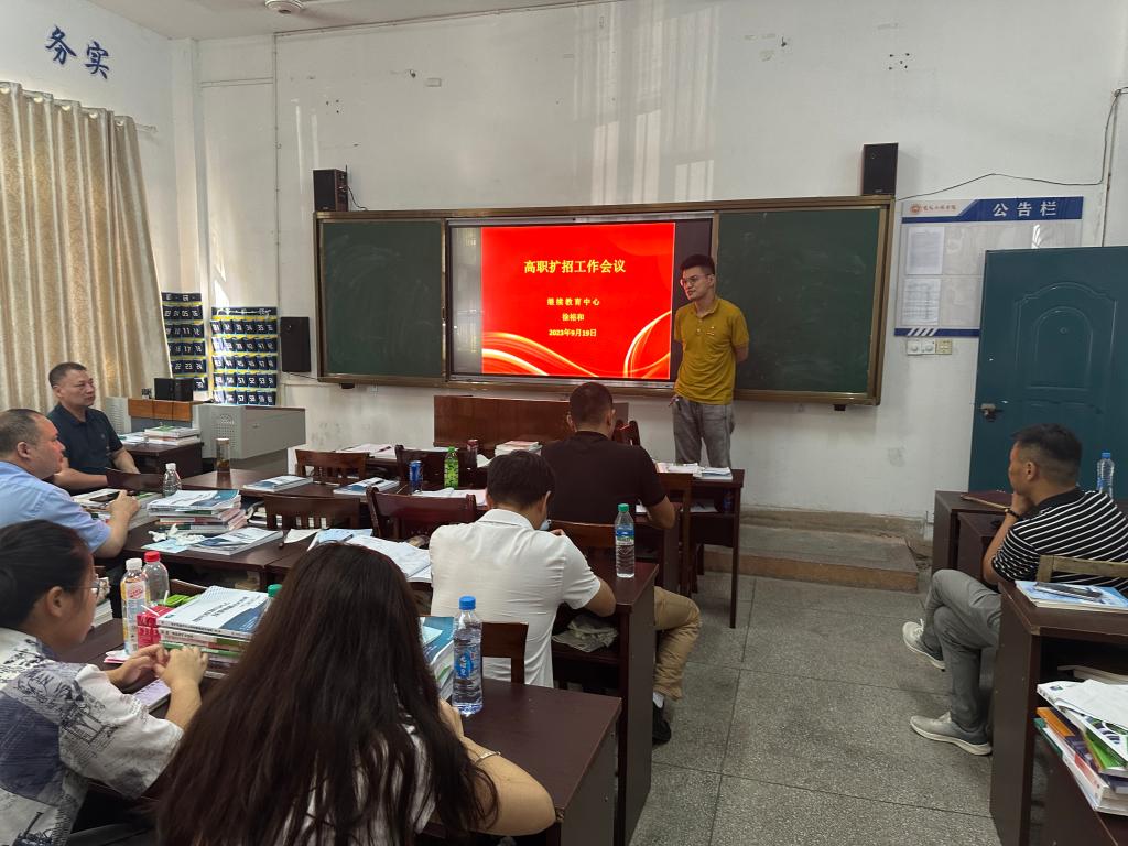 9月19日下午,继续教育中心在明辨楼111教室召开高职扩招学生管理工作会,研究布置本学期高职扩招班各项工作。继续教育中心党支部书记、主任徐裕和,副主任郭永飞,全体高职扩招班辅导员及本学期任课教师参加工作会。