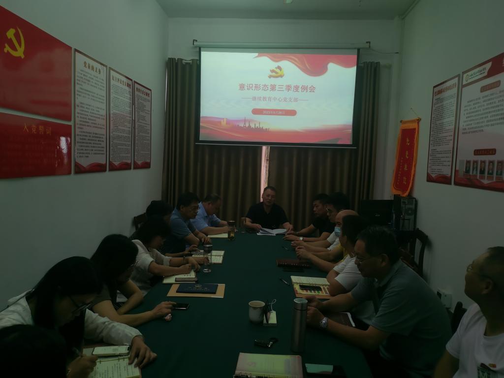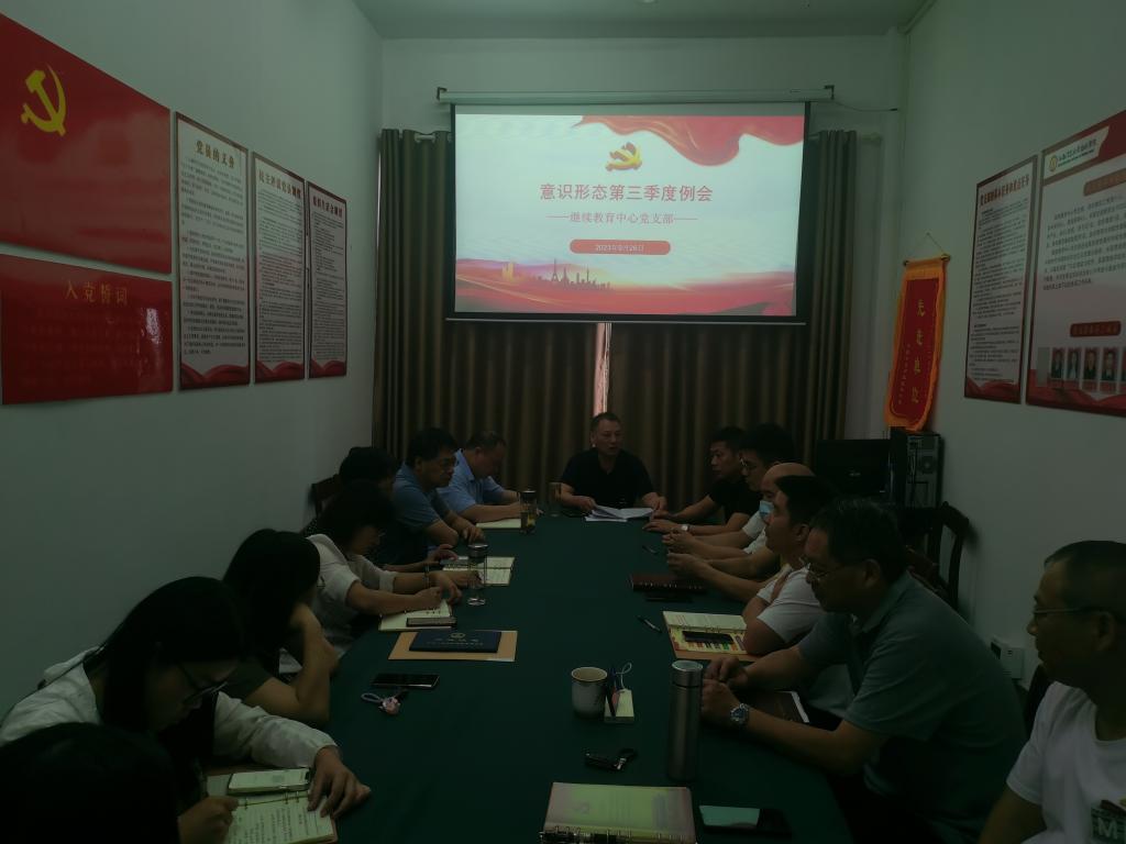 9月26日下午,继续教育中心在明辨楼115党员活动室召开第三季度意识形态工作例会,总结工作,布置任务。会议由中心党支部书记徐裕和主持,全体人员参会。