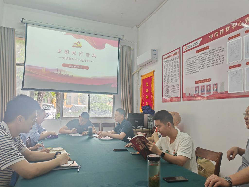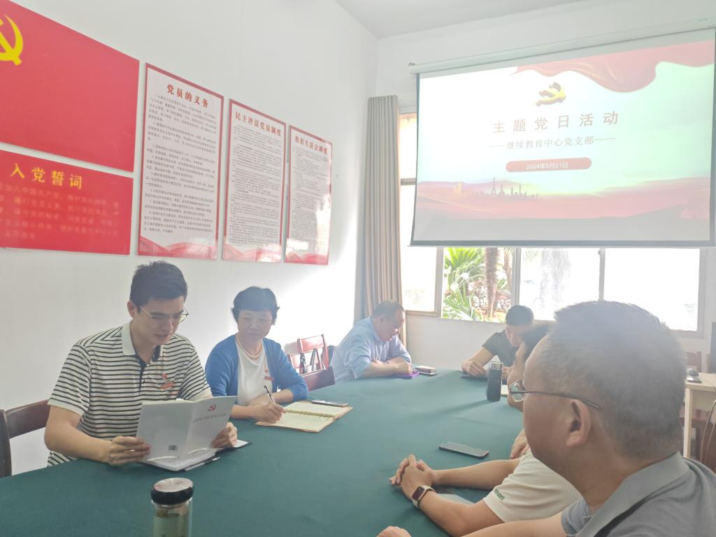 5月21日下午,继续教育中心在明辨楼115党员活动室开展“学习贯彻党章党规,做合格共产党员”主题党日活动。会议由中心党支部书记郭永飞主持,支部全体党员参加。
