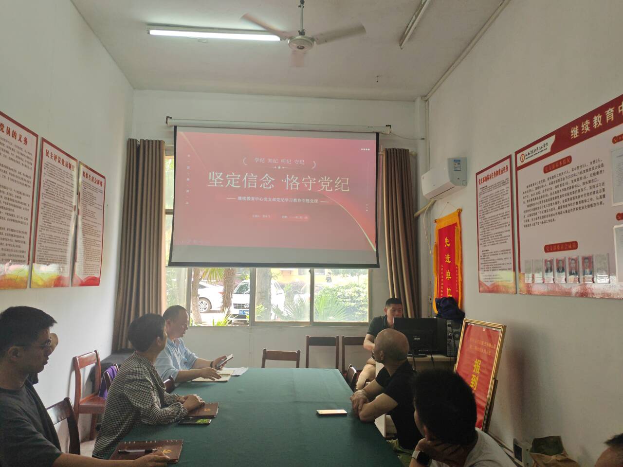 5月28日下午,继续教育中心在明辨楼115党员活动室开展党纪学习教育专题党课活动。中心副主任郭永飞为党员们讲授了一堂以“坚定信念,恪守党纪”为题的党课,中心全体党员参与学习。