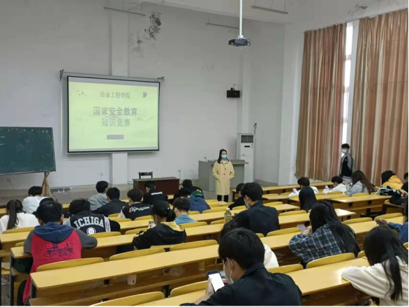 2022年4月15日是第七个全民国家安全教育日,冶金工程学院在新一教阶梯教室举办“国家安全教育”知识竞赛活动。 活动以线上竞赛的形式进行。优胜者参加决赛。参赛人员按疫情防控要求佩戴口罩有序进场,按号就座,聚精会神,认真答题。参赛学生表示,通过今天的活动能更加深刻地理解国家安全的重要性,以后会更加主动学习国家安全的相关知识。 活动结束后,监考老师王昱婧要求,希望同学们在今后的生活和学习中能够提高对国...