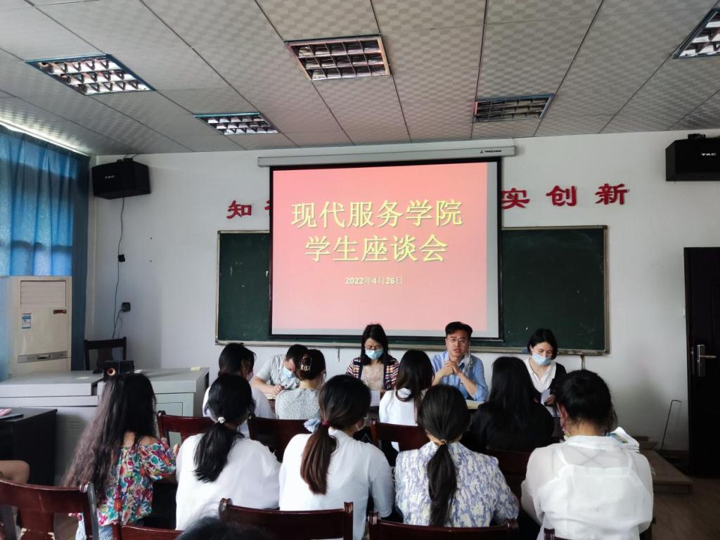 【现代服务学院李思晨报道】 2022年4月26日,现代服务学院组织召开了学生座谈会,听取同学们在校期间取得的收获和对教学实训、学生管理、宿舍管理、后勤服务、校园建设等方面的意见与建议。座谈会上,各班学生代表都积极发言,提出了一些意见和建议,包括:开设“幼儿教师资格证”课程、课外时间开放学前实训中心、宿舍外安装晒衣杆、食堂饭菜存在质劣价高、宿舍报损维修不及时等。学生科记录了同学们提出的意见和建议,就部分...