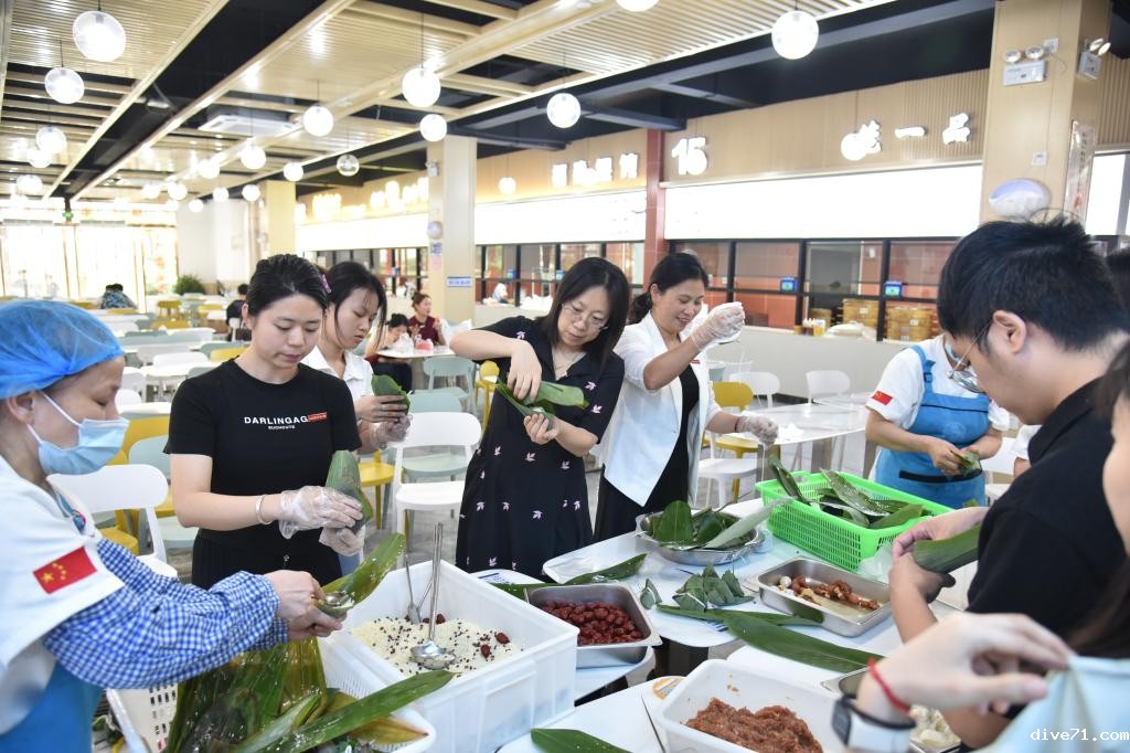 6月6日下午,在端午节来临之际,工会机关一分会组织开展了“传承文化 端午情浓”包粽子活动。分会教师和部分学生一起包粽子、话端午,营造浓厚的节日氛围。在知行餐厅食堂一楼,大家齐聚一堂。食堂阿姨早早准备好了包粽子所需的糯米、粽叶、线、红枣、鲜肉等材料。有经验的阿姨耐心地传授包粽子的技巧,老师和学生们拿起粽叶,学做漏斗,装糯米,加馅料大家一边包裹,一边交流怎样包出自己满意的粽子。现场粽叶飘香,气氛融洽,...