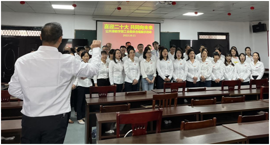 【公共课教学部分会胡明露报道】为迎接党的二十大胜利召开,抒发教职员工对党和祖国的热爱,2022年10月11日下午,公共课教学部工会组织全体教职工举办了一场别开生面的“喜迎二十大 共同向未来”集体合唱活动。在公共课教学部党支部活动室,《我和我的祖国》旋律优美,歌声洪亮。全体教职工身着统一服装,在艺术指导谢艳平、张和赠老师的指挥下,用振奋激昂、情真意切的歌喉唱出了喜迎二十大召开的心情,唱出了爱党、爱国、爱校...