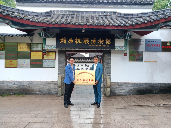 2022年4月22日下午,在新余市赣西抗战博物馆,思政部举行了思政课教师校外研修实践基地揭牌仪式。思政部党支部副书记、副主任周维,赣西抗战博物馆馆长宋子枫出席揭牌仪式并讲话。思政部全体思政课教师参加仪式。揭牌仪式由赣西抗战博物馆馆长宋子枫主持。周维指出,建立思政教师校外实践基地,是学校提质培优工作的要求,是落实学校思政课教师研修基地建设、打造精品思政的重要举措。思政部以签约揭牌仪式为起点,本着“优势...