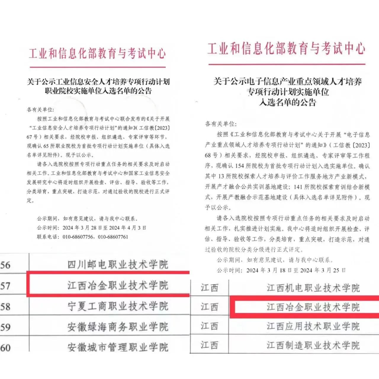 近日,工业和信息化部教育与考试中心公布《工业信息安全人才培养专项行动计划高等院校实施单位入选名单》和《电子信息产业重点领域人才培养专项行动计划实施单位》,我校均位列其中。近年来,我校紧密围绕国家网络空间安全战略及地方网络信息安全产业发展需求,围绕江西“1269”行动电子信息产业链的发展需求,积极探索人才多元化培养新模式,大力推动政、产、学、研、用多元融合的人才培养格局,以电子信息类专业发展为主体,...