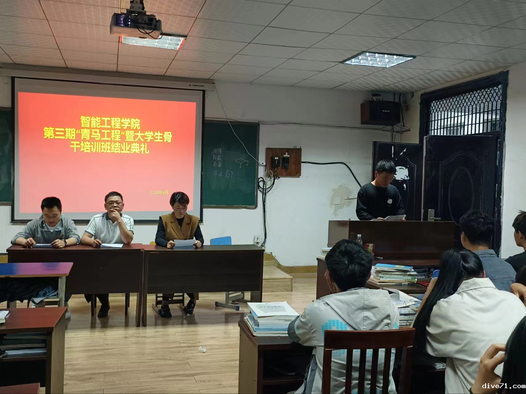 2024年4月1日,智能工程学院第三期“青马工程”暨大学生骨干培训班结业典礼在北校区第一教学楼407举行。智能工程学院副院长简金平、综合干事陈丹丹、团总支书记龚文及培训班全体成员参加了典礼。 本次培训班共有56人报名参加。培训班采取集中授课、社会实践、红色走读、志愿服务等形式开展学习教育,实行综合考评机制。通过考核,有41人结业,14人被评为优秀学员。 典礼上,邹俊鹏同学作为优秀学员代表发言。他表示,作为学...