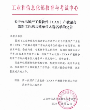 11-28/2024我校入选工信部第一批国产工业软件产教融合创新工作站共建单位